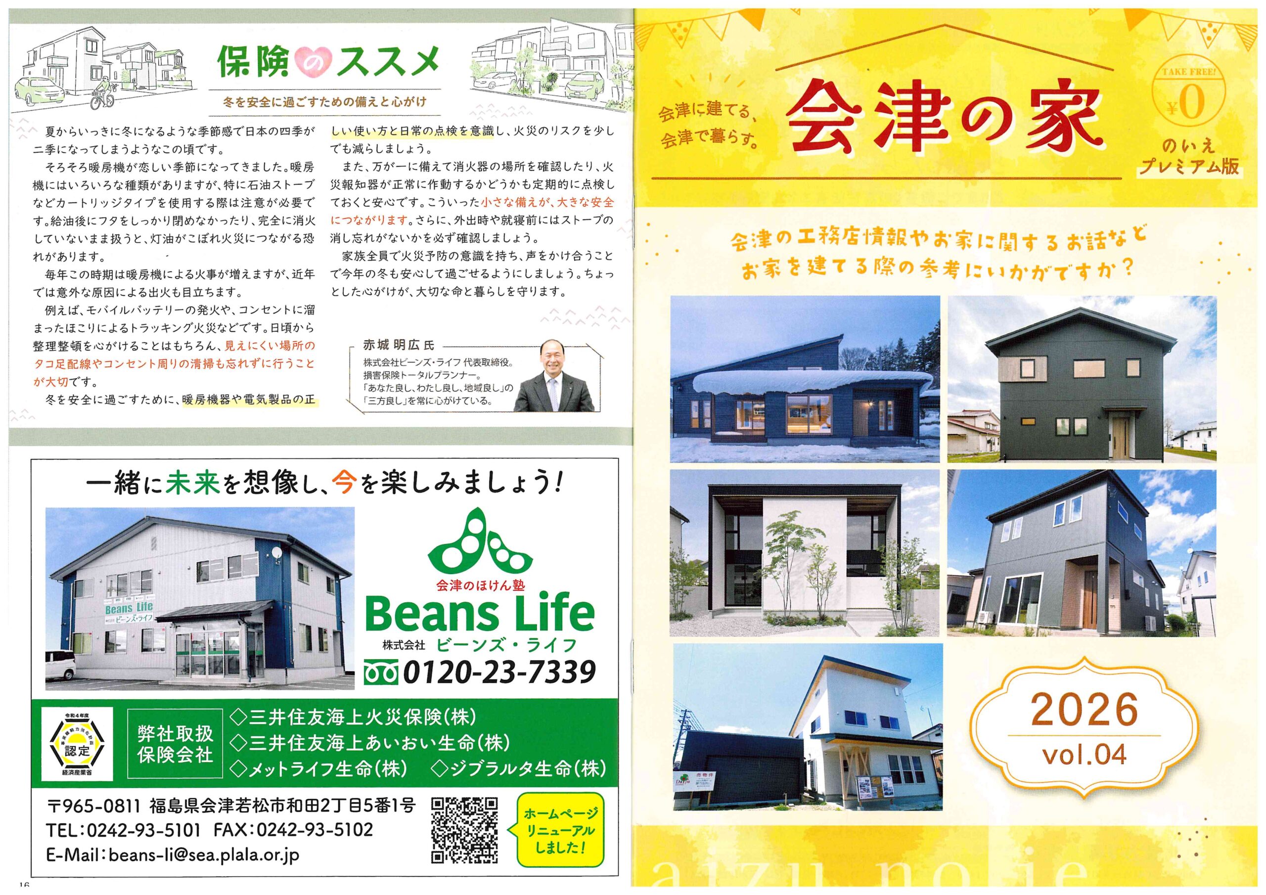 会津の家 -のいえプレミアム版ー 2026/Vol.04 に掲載された社長の赤城の記事を紹介します。 住宅情報誌「のいえ」会津のページ | 家コム会津 季節が急に夏から冬へと移るようなこの頃、暖房機が恋しい季節になってき … 続きを読む